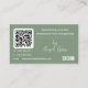 Wreath Vines Handmade | Handcrafted Business Card -- Features leafy wreath vines growing up the left and right sides of the front of the card, along with your business name and website address. On back is a customisable QR Code for web address of your choosing, your tag line on the top right with a line and your name below. The bottom left features optional template fields for your office and cell phone numbers as well as your email address. The bottom right features a variety of social media icons--you can use these for this purpose, swap them for icons of your choosing or delete them altogether. All colours, text and backgrounds are editable. Shown here in sage green.
