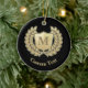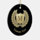 Wreath and shield icon. Custom background colour. Custom monogram. Custom text on both sides.