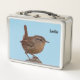 A photograph of an adorable, little wren adorns this customisable lunch box!