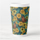 Hand-painted vector pattern with wren birds, zinnias and rudbeckia flowers