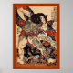 "Lifting A Heavy Beam" depicts the hero Roshi Ensei in a wrestling match where he is lifting a heavy beam of wood as a show of strength. He was famed for his whole body tattoos. Created by Ichiyusai (一勇斎) also known as Utagawa Kuniyoshi (1797 - 1861), Japan.