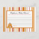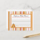 These adorable Autumn Fall Pumpkin Baby Writable Advice Cards are perfect addition to any baby shower or birthday party. Simply hand these cards to your guests, along with fine tip Sharpie pens. Your guests can then write down any advice they have for the new mummy to be or for the birthday boy or girl. These are printed at a 4.25" x 5.6" size on glossy ultra heavyweight 120 lb. cover stock (card stock). We have an entire line devoted to this design here at zazzle store under the * Design Collections menu tab to include invitations (5x7), Return Labels, Mailing Labels, Envelope Seals, Postage Stamps, Cup Cake Picks, Water Bottle Wrappers, Hershey's 1.55 oz. Large Bar Wrappers, Hershey's Miniature Stickers, Microwave Popcorn Bag Wrappers, Writable Place Cards, Goody Bag Toppers, FLAT Thank You Cards (4x5), FOLDED Thank You Cards (4x5), Favour Tags, Menu Cards, Mint Matchbooks, Lollipop Covers, Bookmarks, Bingo Cards, Bingo Card Markers, Bingo Card Call Out Sheets, Writable Advice cards (4x5), etc.