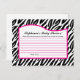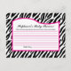 These adorable Hot Pink Zebra Animal Print Pattern Writable Advice Cards are perfect addition to any baby shower or birthday party. Simply hand these cards to your guests, along with fine tip Sharpie pens. Your guests can then write down any advice they have for the new mummy to be or for the birthday boy or girl. These are printed at a 4.25" x 5.6" size on glossy ultra heavyweight 120 lb. cover stock (card stock). We have an entire line devoted to this design here at zazzle store under the * Design Collections menu tab to include invitations (5x7), Return Labels, Mailing Labels, Envelope Seals, Postage Stamps, Cup Cake Picks, Water Bottle Wrappers, Hershey's 1.55 oz. Large Bar Wrappers, Hershey's Miniature Stickers, Microwave Popcorn Bag Wrappers, Writable Place Cards, Goody Bag Toppers, FLAT Thank You Cards (4x5), FOLDED Thank You Cards (4x5), Favour Tags, Menu Cards, Mint Matchbooks, Lollipop Covers, Bookmarks, Bingo Cards, Bingo Card Markers, Bingo Card Call Out Sheets, Writable Advice cards (4x5), etc.