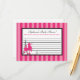 These adorable Pink Poodle Paris Eiffel Tower Writable Advice Cards are perfect addition to any baby shower or birthday party. Simply hand these cards to your guests, along with fine tip Sharpie pens. Your guests can then write down any advice they have for the new mummy to be or for the birthday boy or girl. These are printed at a 4.25" x 5.6" size on glossy ultra heavyweight 120 lb. cover stock (card stock). We have an entire line devoted to this design here at zazzle store under the * Design Collections menu tab to include invitations (5x7), Return Labels, Mailing Labels, Envelope Seals, Postage Stamps, Cup Cake Picks, Water Bottle Wrappers, Hershey's 1.55 oz. Large Bar Wrappers, Hershey's Miniature Stickers, Microwave Popcorn Bag Wrappers, Writable Place Cards, Goody Bag Toppers, FLAT Thank You Cards (4x5), FOLDED Thank You Cards (4x5), Favour Tags, Menu Cards, Mint Matchbooks, Lollipop Covers, Bookmarks, Bingo Cards, Bingo Card Markers, Bingo Card Call Out Sheets, Writable Advice cards (4x5), etc.