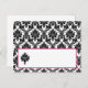 Writable Place Card Hot Pink Black Damask