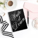 A notebook featuring large script text "Write it Down" for all those things you need to write down and hold on to. Shown here with a black background, you can change the background colour to the colour of your choice by selecting the "customise it" button and selecting another background colour.