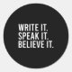 Write It Speak It Believe It Motivational Faith Ap Classic Round Sticker
