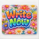 A vibrant energy of creativity with the bold "Write Now" message, beautifully set against a backdrop of colorful flowers that inspires joy and motivation