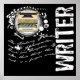 A unique urban grunge digital scrapbook collage design of an old-fashioned typewriter with the word "Writer" and The Alchemy of Writing with embellishments - just for writers.