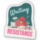 Compact version of the "Writing is My Resistance" from the Cardinal of Resistance series is perfect for sticking on notebooks, laptops etc. Celebrate the power of writing with this bold, retro-modern design. Inspired by mid-century styling and infused with a touch of playful rebellion. This sticker is for those who wrangle with words using a keyboard, quill, pen, or perfectly sharpened pencil. Whether you scribble in the margins, write articles, plot a novel, craft poetry, or journal to stay sane—your words matter. Let the Cardinal of Resistance inspire you to just get started. A great pick for writers, notebook hoarders (who are totally going to use that notebook, right?), story lovers, and idea wranglers of all kinds