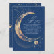 Named "Written in the Stars," this engagement invitation, draped in navy blue and accented with gold, spins a tale of love mingled with the mystery of the cosmos. Its design boasts a metallic crescent moon, softly glowing stars, boundless constellations, distant galaxies, and the grandeur of celestial bodies, meticulously assembled to mirror the awe-inspiring spectacle of a star-covered night. Crafted with care to enchant the eyes and stir the heart, it invites attendees to a festivity rich in romance and wonder, under the vast canopy of the night sky.