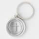 Hand crafted faux wax seal monogram inlaid in a premium silver keychain