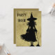 Witch with her broom silhouette on a hazy background ready for a party. Use for Halloween bash, birthday, or even a witches bachelorette invitation.