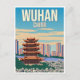 vintage, retro, travel, modern, watercolor, Wuhan, china, tourism,