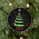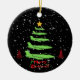 Design features a minimalist illustration of a Christmas tree made from green military WW2 aeroplanes. The tree is topped with a bright yellow star and the trunk spells out 'Merry Christmas' in red, fun font. On the sides of the tree sits 2 red small plaid coloured Christmas trees. Snow falls throughout entire surface of the ornament. The back has a heartfelt message of "Sky's finest pilot" and "Merry Christmas from, names" - all of which is customisable.