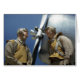 World War Two picture of U.S. Marine Corps lieutenant pilots near propeller of a power tow-plane used for the training gliders at Parris Island's Page Field, South Carolina. Vintage WWII colour photo taken by photographer Alfred T. Palmer in 1942.