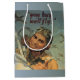 Medium glossy gift bag with a modified image, on the front, of a 1940s U.S. Defence bonds poster with an Air Force pilot, a dark sky full of WWII aircraft, and the sentiment, “You buy we’ll fly.” The back has an image of WWII aircraft in a dark sky. See the entire Patriotic 40s Gift Bag collection in the PARTY FAVORS section.