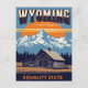 Bring the rugged charm of the American West into your home with this vintage-style Wyoming poster. Featuring the majestic Teton Mountains, a rustic log barn, and a bold sunset backdrop, this design celebrates the natural beauty and pioneering spirit of the Equality State. Perfect for travelers, adventure seekers, and anyone who loves mountain landscapes and Western heritage. Ideal for gifts, home decor, or as part of a U.S. state travel collection.