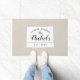Modern farmhouse personalised doormat with your family name inside your state map. Faux burlap canvas texture background. Click Customise It to add your own text and images and create a unique one of a kind design!