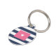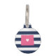 Let your furry friend show some home state pride with this cute Wyoming pet ID tag. Design features a white silhouette map of the state of Wyoming in pink with a white heart inside, on a preppy navy blue and white stripe background. Add your pet's name and contact information to the back in white lettering on a pink background.