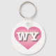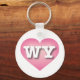 This keychain features a cool pink heart with a white-washed centre containing the bold white upper-case letters WY, the official abbreviation for Wyoming, the cowboy state.