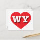 This postcard features a vibrant red heart containing the bold, white, upper case letters WY, the official abbreviation for Wyoming, the cowboy state. The reverse side of the postcard is blank, awaiting your personalised text or handwritten sentiments.