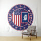 Badge of Wyoming with flag of Wyoming and flag of USA colours, rounded shape.