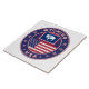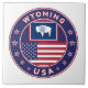 Badge of Wyoming with flag of Wyoming and flag of USA colours, rounded shape.