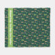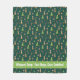 A Wintery fleece blanket with a festive design. The blanket features a green background adorned with various holiday-themed elements, including Christmas trees, candy canes, stars, and whippets wearing Santa hats. At the bottom of the blanket, there is a green banner with white text that reads: "Whippet Snug: Fast Dogs, Cosy Cuddles!"