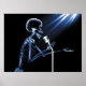 X-RAY SKELETON SINGING ON RETRO MIC - BLUE POSTER