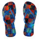 Xadrez laranja, azul, falso sujo com manchas. flip flops