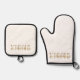 Xiong Hmong Last Name Beige Plaid Oven Mitt & Pot Holder Set