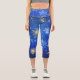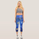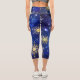 XMAS Blue Background with Golden Snowflakes Capri Leggings