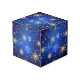 Blue Christmas background with gold and white jewellery snowflakes. Golden snowflakes. XMAS.