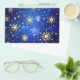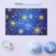 Blue Christmas background with gold and white jewellery snowflakes. Golden snowflakes. XMAS.