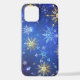 XMAS Blue Background with Golden Snowflakes iPhone Case
