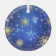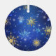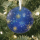 XMAS Blue Background with Golden Snowflakes Label Glass Tree Decoration