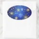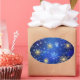 XMAS Blue Background with Golden Snowflakes Oval Sticker