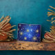 XMAS Blue Background with Golden Snowflakes Plaque