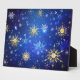 Blue Christmas background with gold and white jewellery snowflakes. Golden snowflakes. XMAS.