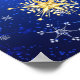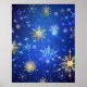 Blue Christmas background with gold and white jewellery snowflakes. Golden snowflakes. XMAS.