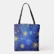 XMAS Blue Background with Golden Snowflakes Tote Bag