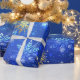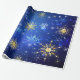 XMAS Blue Background with Golden Snowflakes Wrapping Paper