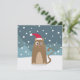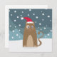 Xmas cat in snow forest, santa hat kitty card