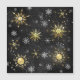 Black Christmas background with gold and black jewellery snowflakes. Golden snowflakes. Xmas.