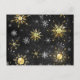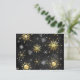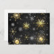 Xmas Golden Snowflakes on Black Background Announcement Postcard