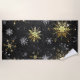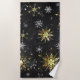Xmas Golden Snowflakes on Black Background Beach Towel