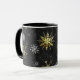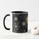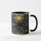 Black Christmas background with gold and black jewellery snowflakes. Golden snowflakes. Xmas.