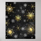 Xmas Golden Snowflakes on Black Background Poster