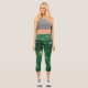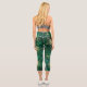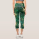 Xmas Golden Snowflakes on Green Background Capri Leggings